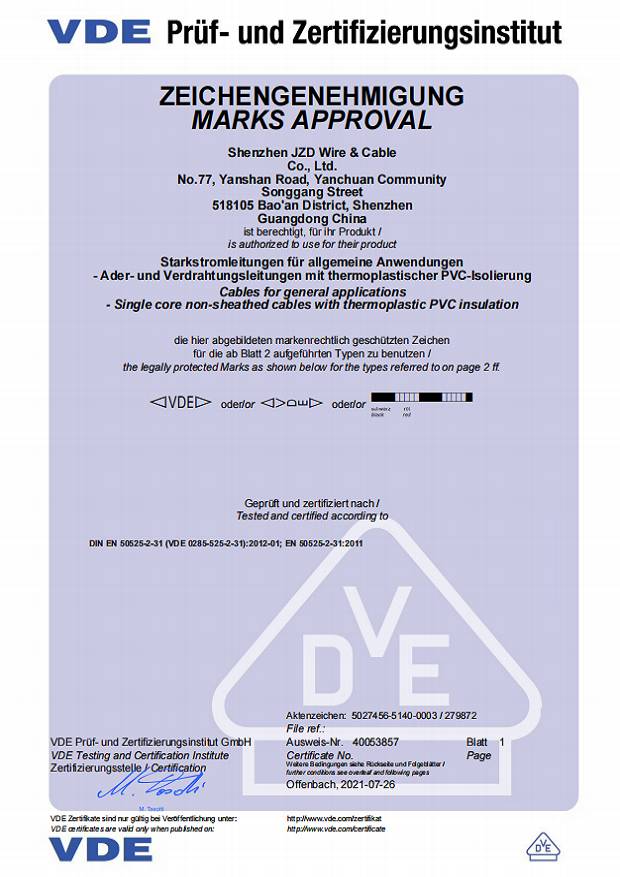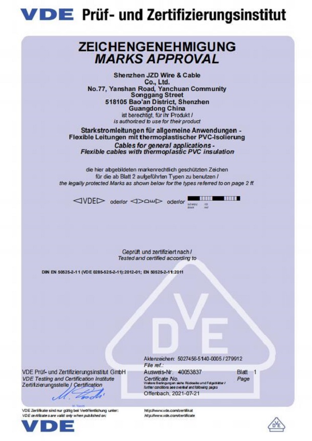 德國VDE電線電纜資質(zhì)認(rèn)證20210721